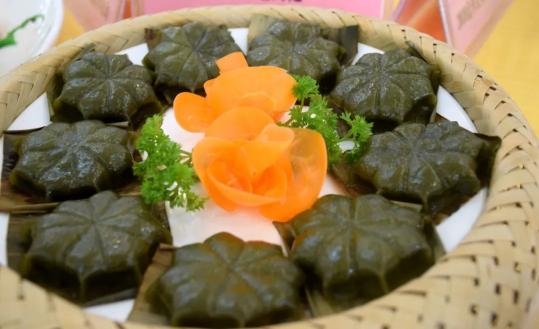 艾叶粑粑将野生的艾叶采摘回来,清洗后放入开水中煮烂,之后捞出绞碎,与适量的糯米粉和粘米粉揉成面团,再加入炒香的花生、芝麻、糖等馅料做成艾叶粑粑,最后入锅蒸熟。此时,做成的艾叶粑粑颜色翠绿,开锅即闻到一股艾叶的清香,闻之浑身舒畅,食之甜蜜中带着丝丝的青涩。