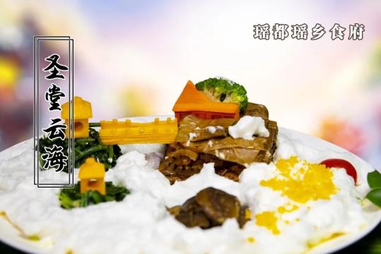 圣堂云海是一道模仿圣堂云海的意境菜,仿佛圣堂云海就在眼前,这道菜工序较为复杂,主要食材以黄笋、土猪肉、土鸡蛋、野生香菇为主,色香味俱全。
