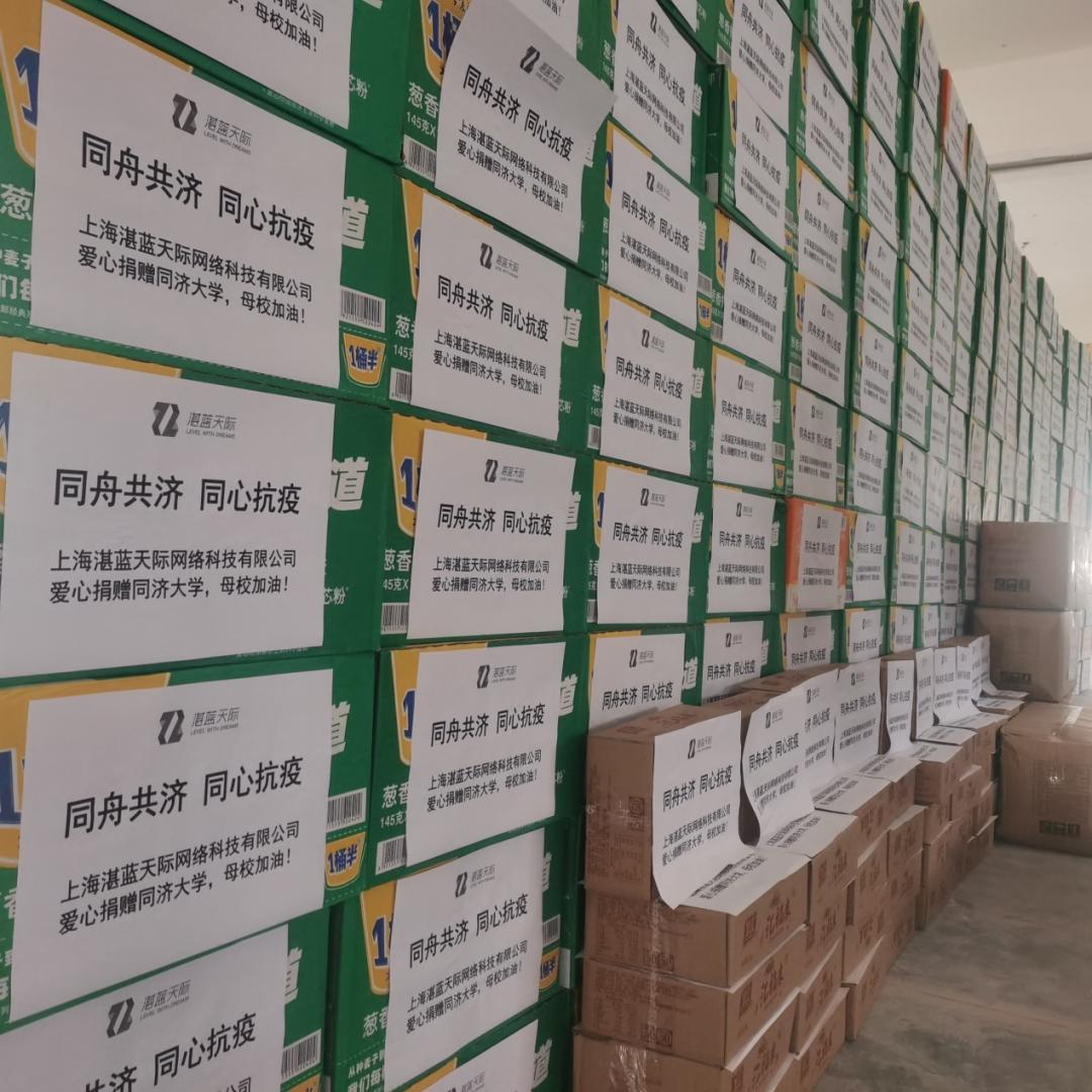 封控期间,上海湛蓝天际网络科技有限公司放弃原有业务转为防疫保供方,为杨浦区卫健委、中建、机场、酒店、工会等提供保供服务。从3月30日开始连续作业,现场运输作业6人,近20位员工居家办公提供后台支持协调统筹,共计运送食品、生活用品近90万件,防疫物资10万余件,累计提供保供类业务涉及金额约500多万元。此外,公司还两次向同济大学捐赠防疫物资、生活保供物资等万余件,共计价值约15万元。