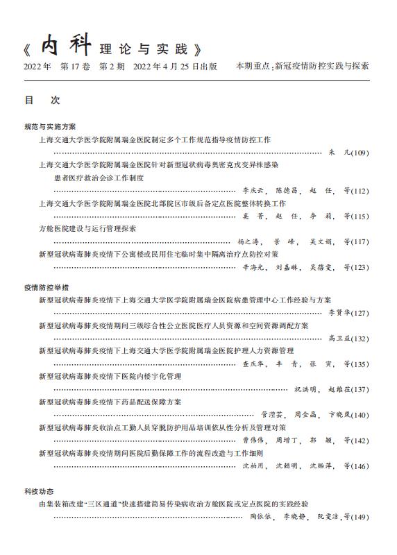 中国工程院院士、瑞金医院院长宁光表示,“如何更好地保护患者的生命健康?如何在疫情防控中发挥公立医院作用?离不开科学与规范的力量。作为一家三甲医院,瑞金人身上有更重的责任。在国务院联防联控机制指导之下,我们看到,一项项鲜明的规范制度在瑞金医院、定点医院、方舱等处有序铺开,同时形成科学规范的方法,我们希望通过《内科理论与实践》抗疫专刊的声音,为疫情防控工作提供更多的探索。”