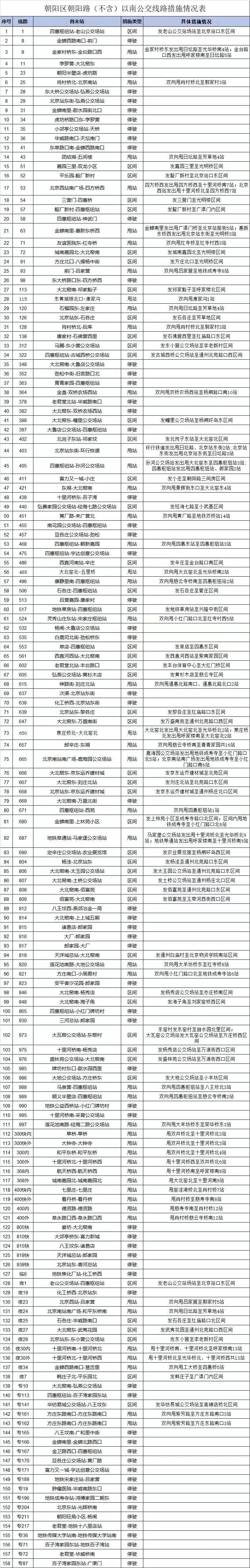 记者从北京公交集团获悉,按照防疫工作要求,朝阳区朝阳路以南(不含朝阳路)所属158条公交线路自5月4日首班车起,采取甩站绕行、停运等措施,其中:采取区间措施47条,甩站措施48条,停驶措施63条。具体公交线及站点如下:
