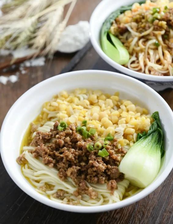 肉末煸炒至金黄,再与豆瓣酱一起细细熬制成杂酱,搭配细长且有韧劲的“水叶子”(对面的称呼)。这样一碗大道至简的杂酱面,让四川人此刻与陕西人灵魂相通。