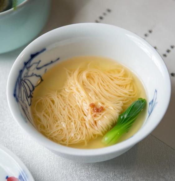 金丝面极细,用高汤微煮即熟。就如同川菜名菜“开水白菜”一样,汤清味鲜,大道至简。