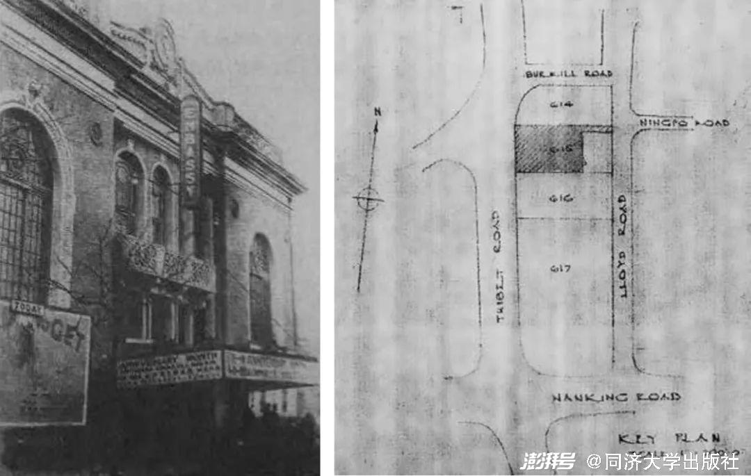 △夏令配克大戏院旧照(左);大上海大戏院用地图(右)