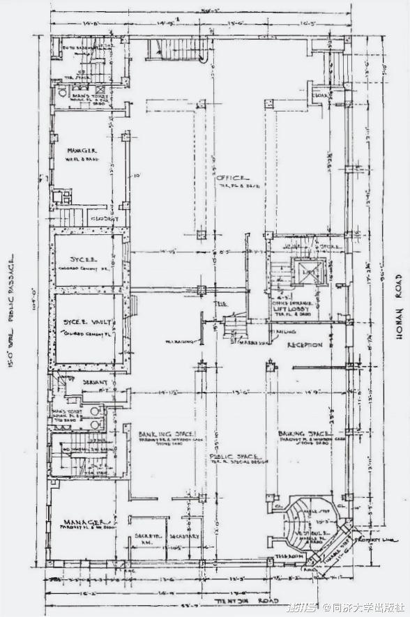 大楼平面体现了功能主义。由于业主对金融业非常熟悉,推测其在功能上有自己的要求。童寯曾回忆银行家“在银行设计大厦上,柜台怎样排,银库在何处,经理办公在何处,都有自己的主张,争取取得‘顾客服务’周到和避免工作上浪费人力物力”。底层实为恒利、大中两家银行,夹层为保管库,采用了大空间设计。