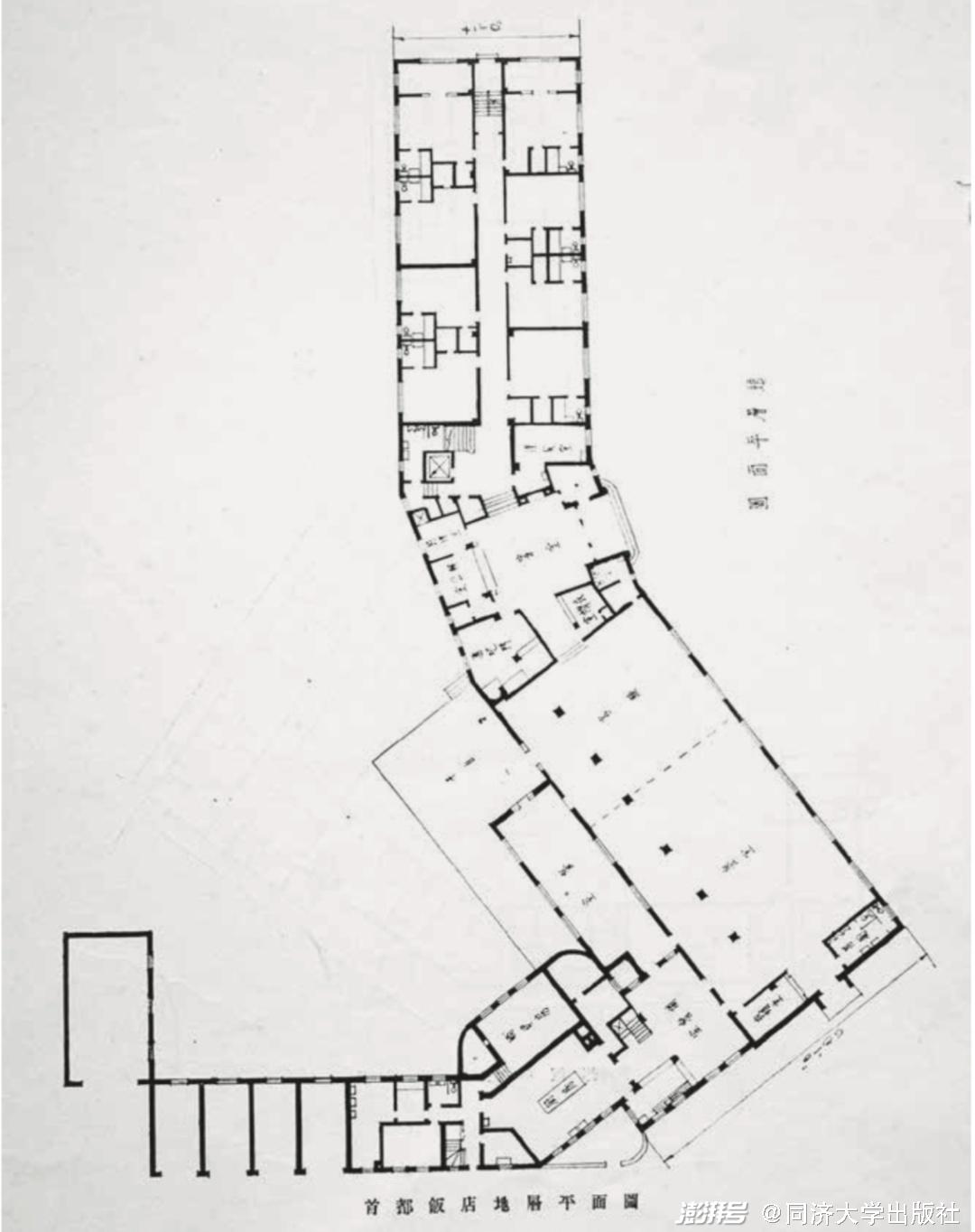 首都饭店“顶层有阳光室、会聚室、阳台及平台花园,可供旅客应用”,是出于功能考虑,但也和柯布西耶的新建筑五点深相契合,展示了华盖对现代主义建筑思潮的了解。不过就在开业8个月之后(图签为1936年4月4日),可能是因旅游客源旺盛,存档出现了华盖设计的花园和阳光室改建为客房的图纸。