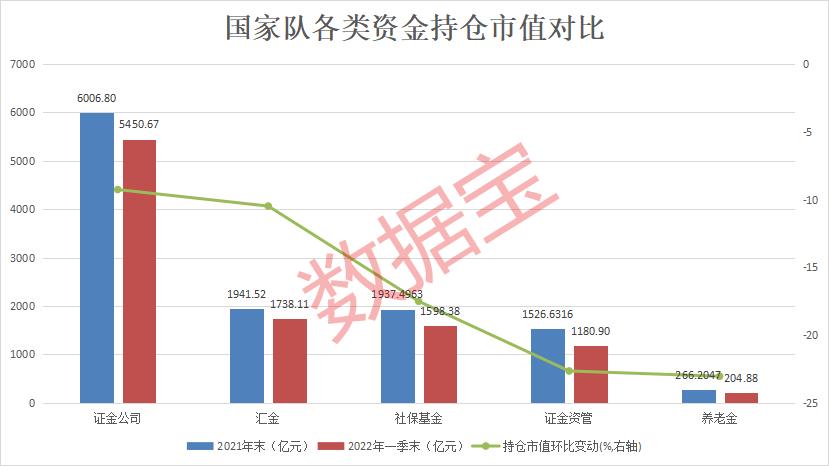 数据宝统计,截至2022年一季末,证金公司出现在161股前十大流通股东名单,持仓市值合计5450.67亿元。相比去年末,证金公司退出5家公司前十大流通股东。证金资管出现在108股前十大流通股东名单,合计持股1180.9亿元。相比去年末,有16股前十大股东暂时无法看到证金资管身影,也可能是因为被挤出的原因。