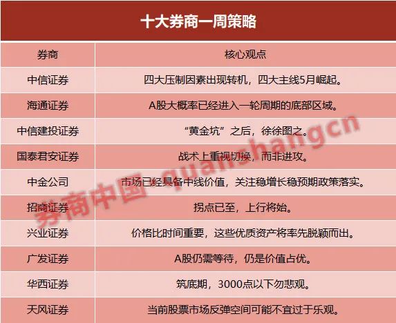 券商中国记者整理出十大券商A股策略,以飨读者。
