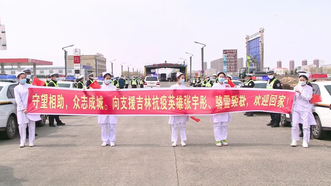 4日中午,我市支援吉林疫情防控的两名医务人员骆雪、张宇彤经过近两个月的紧张工作,圆满完成支援任务返回家乡,市委、市政府举行欢迎仪式,迎接“战士”平安归来。