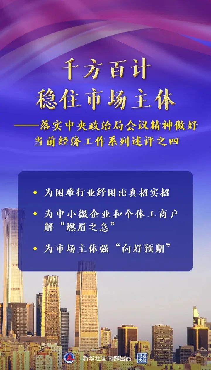 坚定信心、攻坚克难,认真落实好中央政治局会议精神,将政策举措落实落细,全力以赴稳住市场主体,就能赢得未来。(记者张辛欣、赵文君、周圆、戴小河)
