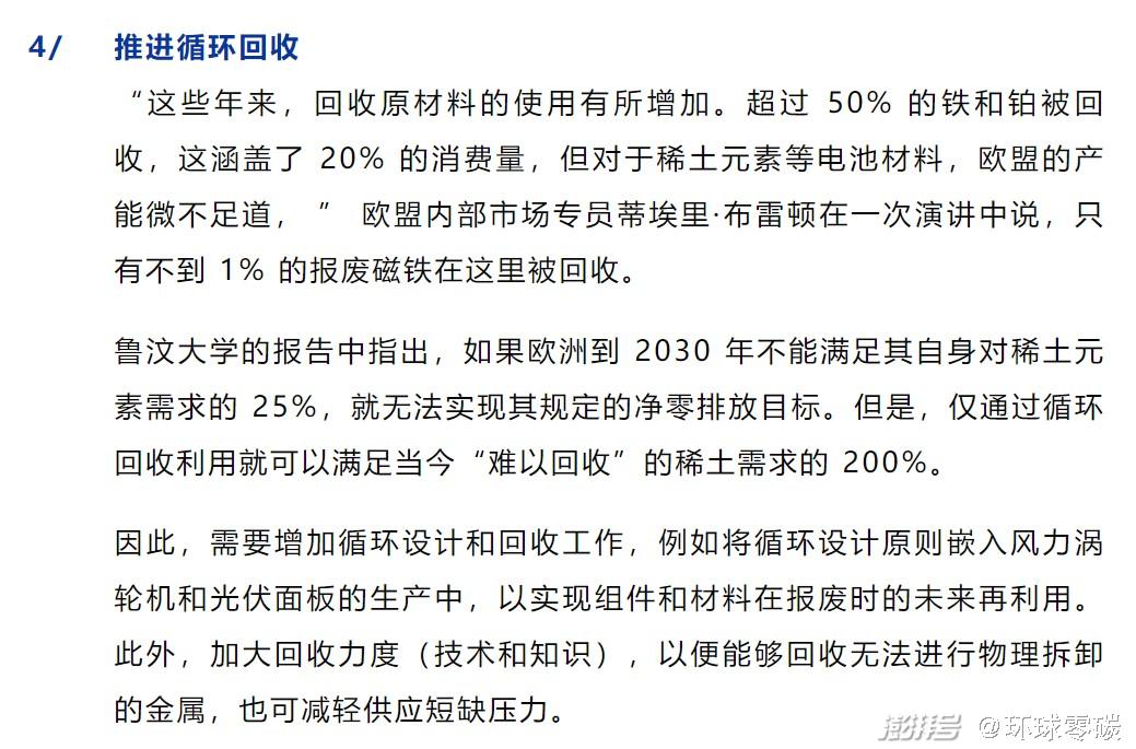 这项名为《清洁能源的金属(Metals for Clean Energy)》研究表明,虽然从长期来看,回收可以满足欧洲高达 75% 的需求,但未来 15 年,欧洲将面临锂和稀土等关键金属的严重短缺。