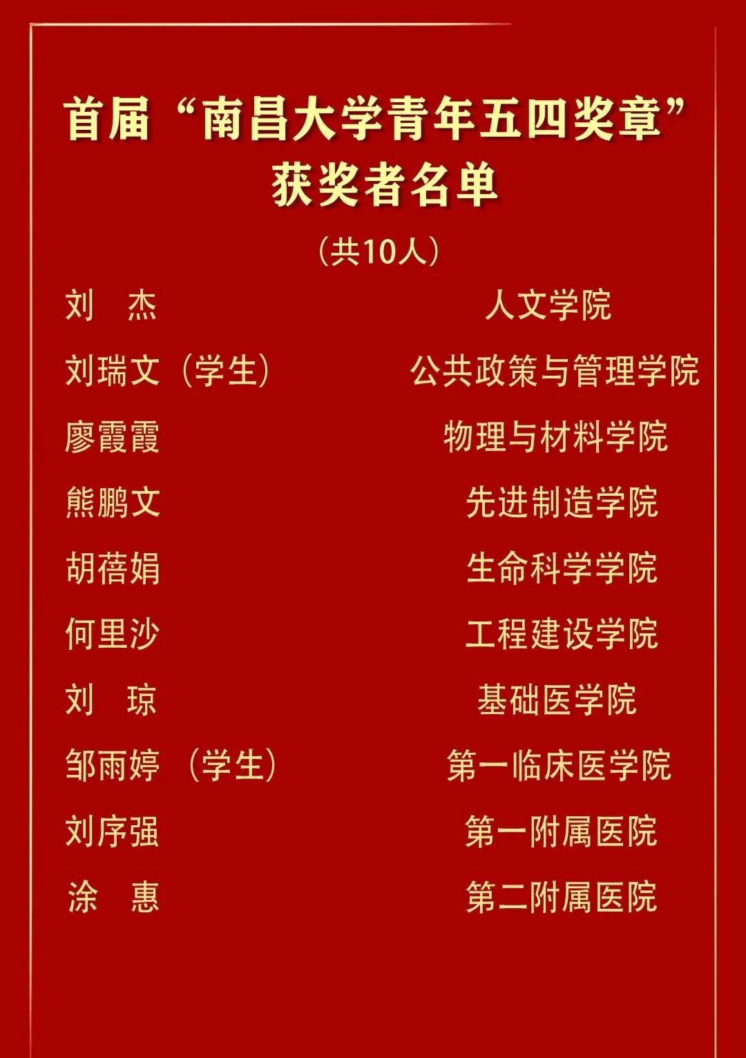 原标题:《首届“南昌大学青年五四奖章”名单出炉》