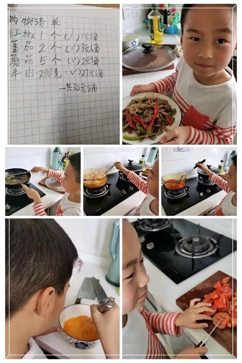 这次教孩子们做菜的师傅也是大有来头,是一位经营餐饮的学生家长从自家店里请来的。洋葱炒牛肉、西红柿炒鸡蛋、西兰花炒胡萝卜、蔬菜炒肉片,在大厨的指导下,一道道的美味新鲜出炉。