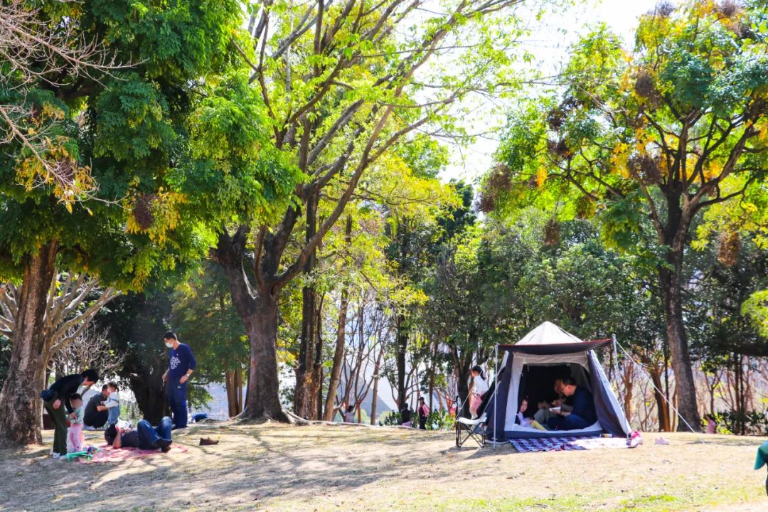 前两年露营活动大热后,今年深圳各大公园都主动划分出了专门的帐篷区域,公园露营就成了今年五一“深蹲”人们的共同选择。