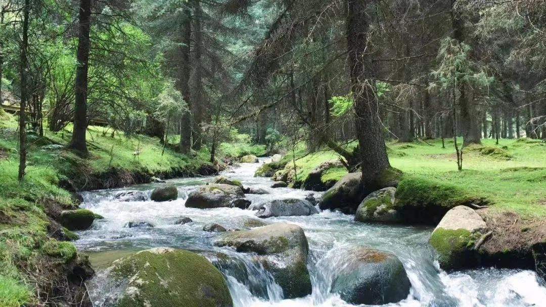陪母亲去冰沟河,看群山绿树,听山泉叮咚,呼吸天然氧吧清甜的空气。