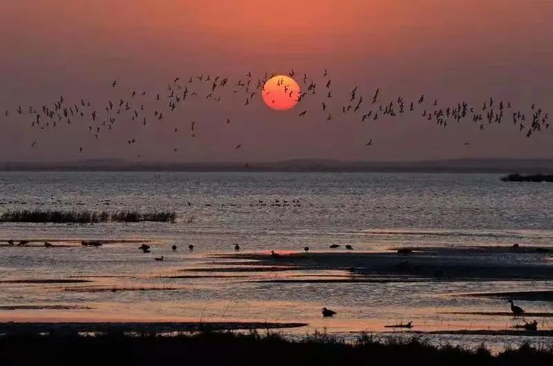 陪母亲去石羊河景区观飞鸟、看晚霞,感受长河落日圆的壮美。
