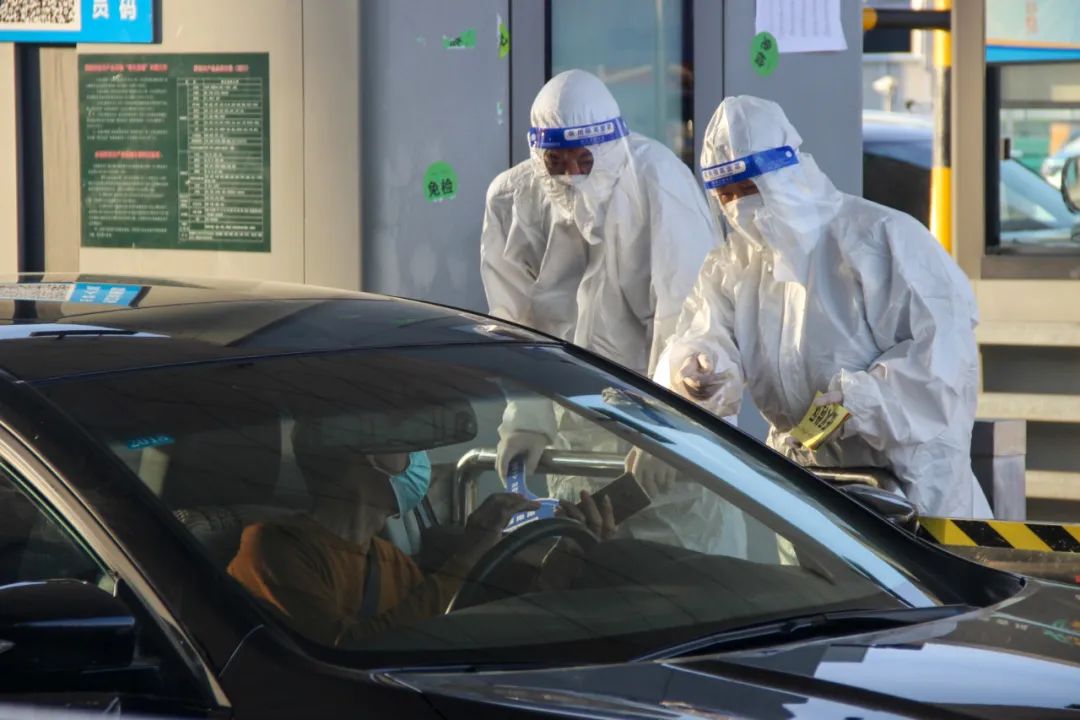 在集贤路高速道口,工作人员引导司乘人员接受疫情防控相关检查。刘庆桥 摄(图源:安徽图片网)