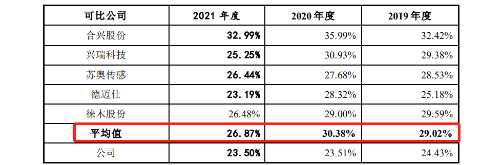 招股书显示,与同行相比,维科精密毛利率水平低于同行业可比公司,公司解释为主要系产品结构影响、人工成本相对较高以及规模差异所致。