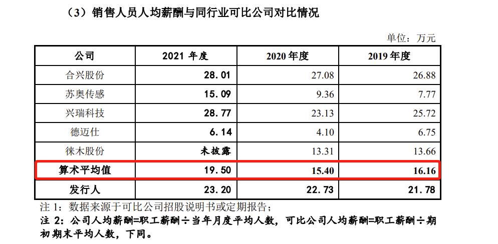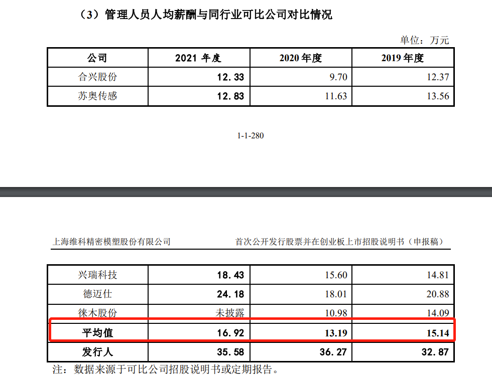 中华网财经翻阅招股书发现,报告期内,维科精密销售人员人均薪酬分别为21.78万元、22.73万元、23.20万元,而同行均值则分别为16.16万元、15.40万元、19.50万元。维科精密解释为主要销售部门位于上海,薪酬水平具备一定市场竞争力。