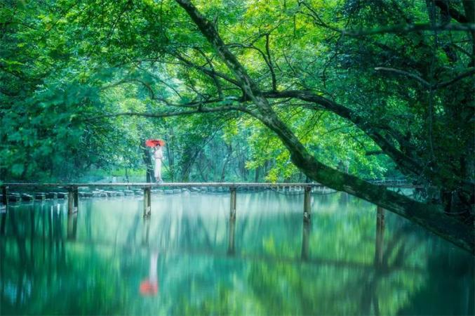 眼下,在位于皖南黄山市南麓、丰乐河畔的千年古村落——徽州区西溪南村,绵延4公里长的自然生态湿地迎来一年中最美的季节,成片的枫杨林草木葱茏,绿树成荫,溪泉环绕,从空中俯瞰,原生态的枫杨林湿地宛如一条绿色的丝带与清澈的丰乐河紧紧相依,又与徽派民居、绿水青山相互映衬,随手用相机定格,便是如画美景。
