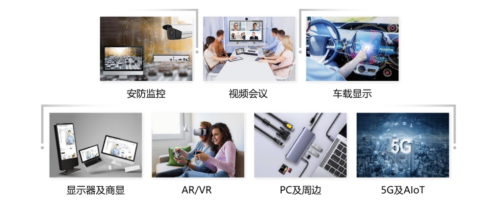 成立于2006年11月的龙迅股份主营业务为高清视频桥接及处理芯片和高速信号传输芯片的研发设计和销售。经过长期的技术创新积累,公司已开发一系列具有自主知识产权的高速混合信号芯片产品,可全面支持HDMI、DP/eDP、USB/Type-C、MIPI、LVDS、VGA等多种信号协议,广泛应用于安防监控、视频会议、车载显示、显示器及商显、AR/VR、PC及周边、5G及AIoT等多元化的终端场景。