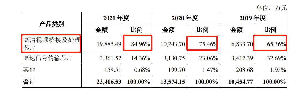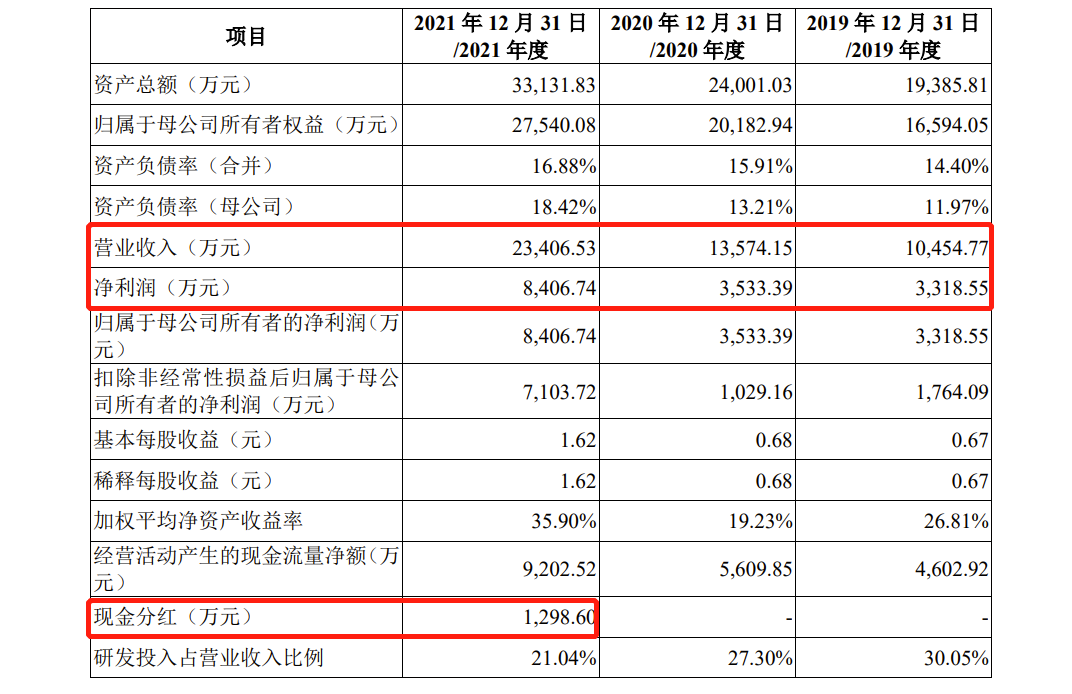 财务数据方面,根据招股书,2019年-2021年(下称:报告期),龙迅股份实现营收分别为1.05亿元、1.36亿元、2.34亿元,同期净利润分别为3,318.55万元、3,533.39万元、8,406.74万元,扣非后净利润分别为1,764.09万元、1,029.16万元、7,103.72万元。