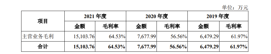毛利率方面,报告期各期,龙迅股份报综合毛利分别为 6,479.29 万元、7,677.99 万元和 15,103.76 万元, 均为主营业务毛利,综合毛利率分别为 61.97%、56.56%和 64.53%,整体波动起伏。