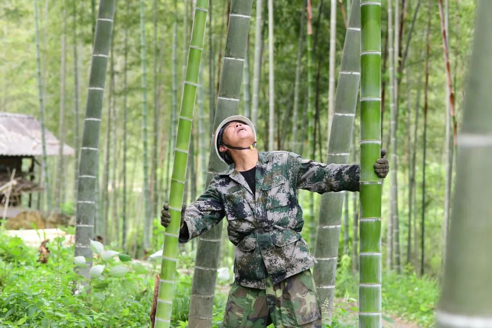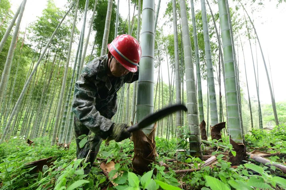 在一株株嫩竹间端详,寻找最佳的竹材。陈伟凯 摄