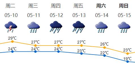 ✍ 5月10日,阴天有雷阵雨,部分时间雨势较大;