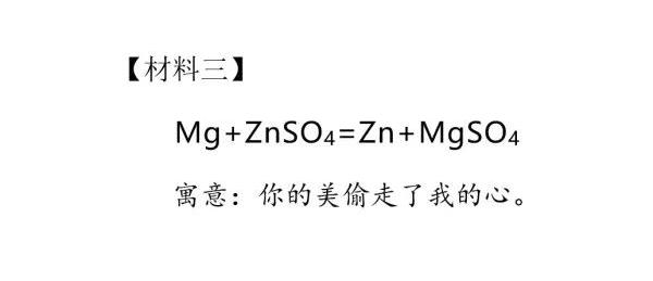 从近年中考语文命题看,日常生活、文学体验、跨学科学习这三类语言运用情境已经有丰富的体现。以最近南京市鼓楼区中考语文一模卷为例,其中一题是一个化学方程式,镁与硫酸锌发生置换反应得到锌与硫酸镁,寓意“你的美偷走了我的心”,要求学生以此为借鉴写一个公式或字母符号,表达一个新的寓意,并说明使用情境。