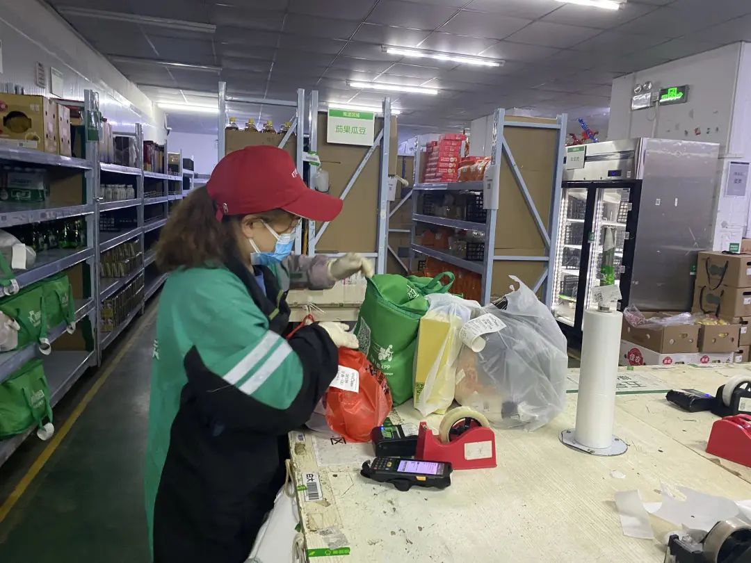 “现在我们的货源多了,市民的选择性也多了,一次订的东西也比较多。所以现在我们分拣的总数也比较多,从早上6点开始就不停。” 分拣员冯曼一边忙碌一边介绍。
