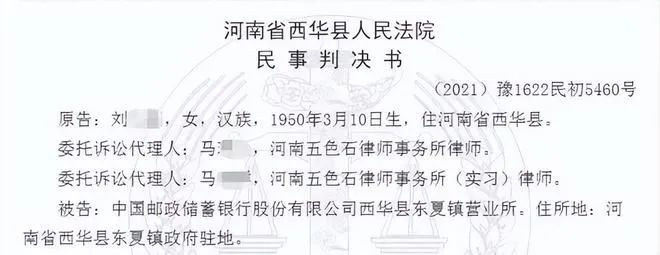 西华县人民法院依照《民法典》有关规定,判决如下:被告邮储银行西华县某营业所于判决生效后十日内给付原告刘某存款本金6万元及利息。