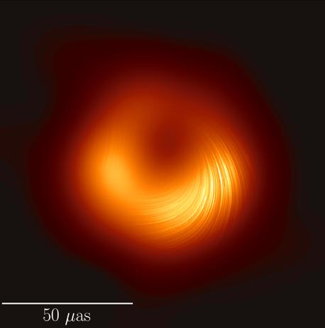 前两次发布的时间虽然相隔了两年,但其实它们来自于同一批成像观测。不同之处在于,这张“照片”是通过处理偏振信号获得的,所以我们称之为“黑洞在偏振光下的影像”。这也是天文学家第一次在如此接近黑洞边缘处测得表征磁场特征的偏振信息。