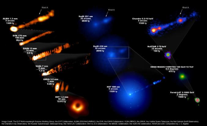 M87的多波段观测结果,天马射电望远镜参加其中EVN的170mm和EAVN的13mm及7mm观测。 | Event Horizon Telescope Collaboration