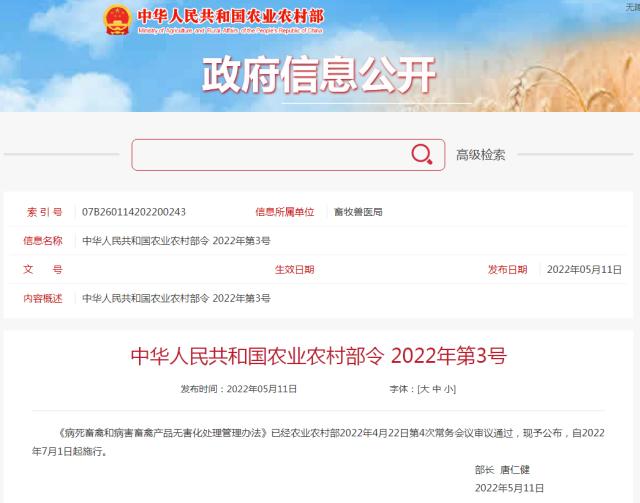 为了加快完善相关工作机制,近日,农业农村部发布《病死畜禽和病害畜禽产品无害化处理管理办法》。