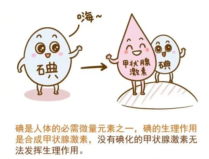 碘和蛋白质、脂肪、糖类、维生素等一样作为营养素存在于人体。有“智力元素”之称,是人体必要的微量元素,能参与能量代谢与维持调节体温,还可促进人体的生长发育,大脑和神经系统发育。