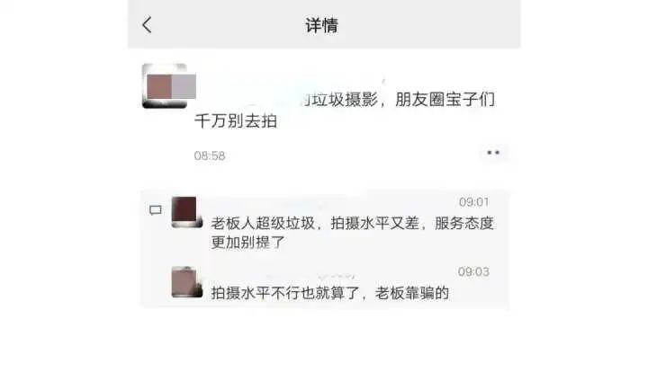 因为对婚纱照的拍摄效果和精修片不满意,加上微信里和影楼老板的沟通又不畅,王小姐一气之下在微信里骂了老板一顿,还在朋友圈发布了辱骂影楼的话,让众亲友见证她的气愤。