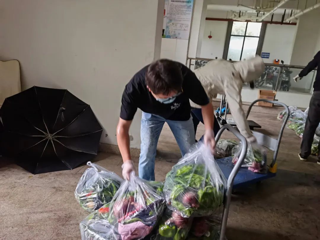 谢胜盛担任志愿者,帮助社区分发抗疫物资