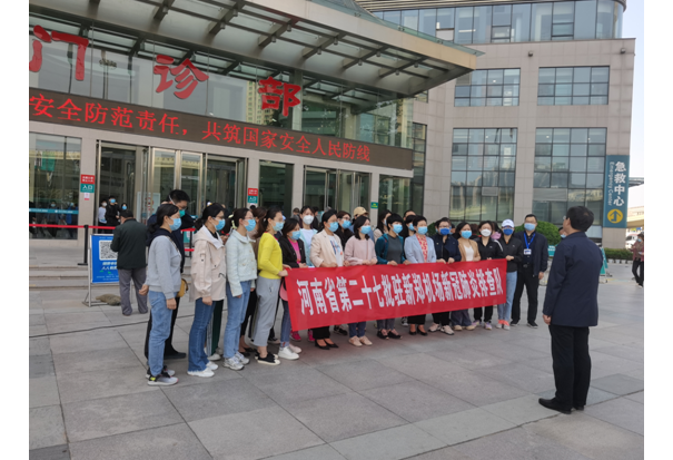 5月15日上午,按照省卫健委的统一部署,由我院组建的河南省第二十七批、我院第九批机场新冠肺炎排查队24名同志奔赴郑州新郑国际机场,开展为期一个月的入境旅客新冠肺炎排查工作。医务处处长王守俊、医务管理科副科长黄凯在河医院区门诊广场为机场排查队送行。