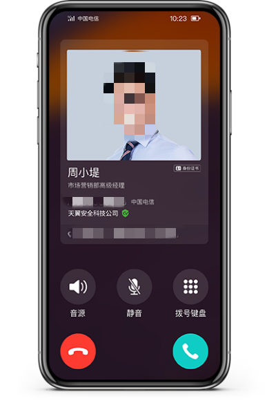 在可信通信通话过程中,被叫在接到来电振铃同时,将展示主叫用户包括单位、姓名、职称、头像等可信身份信息,并可通过查看国家CA认证中心颁发的数字证书验证来电的真实性,该数字证书具有可溯源的法律效力。