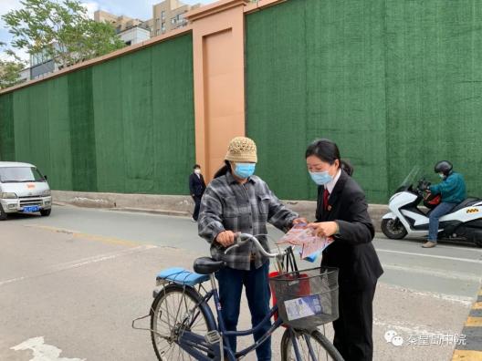 5月16日刑二庭又组织干警在主城区重点区域及部分学校门口对接送孩子的家长进行宣传法律规定,通过发放宣传彩页和现场宣读的方式,劝导接送孩子的家长和过往群众规范停车、文明出行,对于驾驶摩托车及电动自行车的家长要注意使用头盔,保护未成年人的安全,引导家长及孩子们提高自我保护及防范意识,同时也增强了社会各界保护未成年人健康成长的责任,为上学、放学的孩子们营造一个安全、有序的道路交通环境。