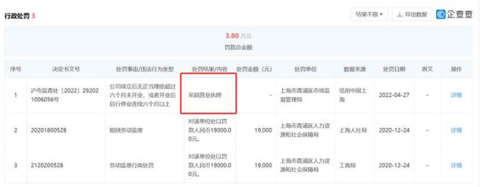 5月17日,绿驰汽车科技集团有限公司被上海市青浦区市场监督管理局吊销营业执照,原因是公司成立后无正当理由超过六个月未开业或者开业后自行停业连续六个月以上。