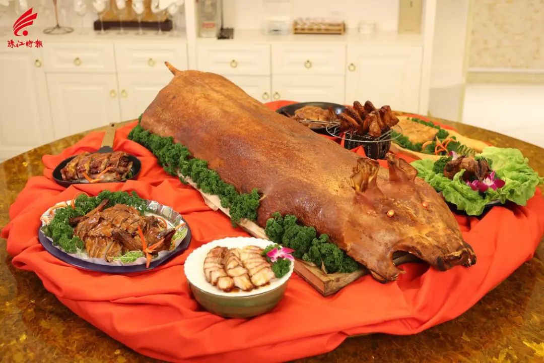 广式烧腊代表制品,包括烧猪、叉烧、烧鹅、烧鸭、烧排骨等。