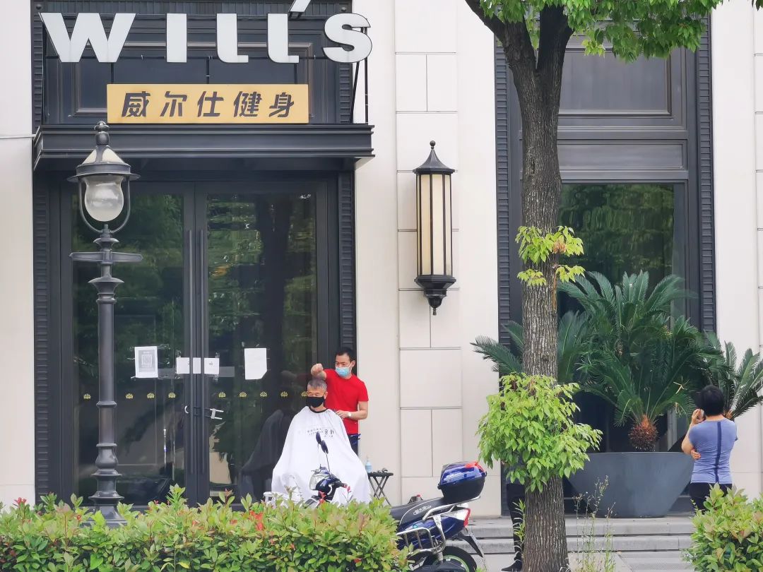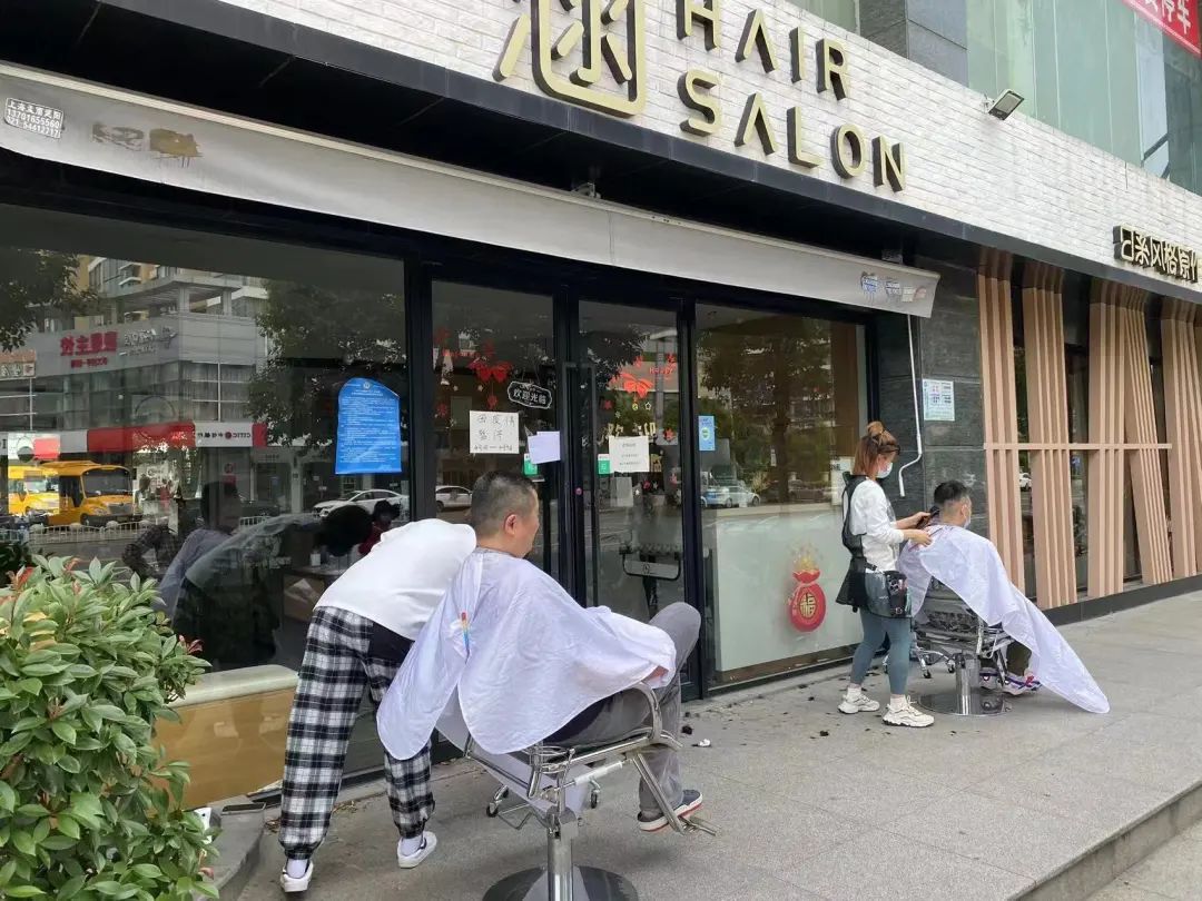 也许是为了防疫,不少理发师选择在人行道露天环境下给客人理发,这场面过去不易见。