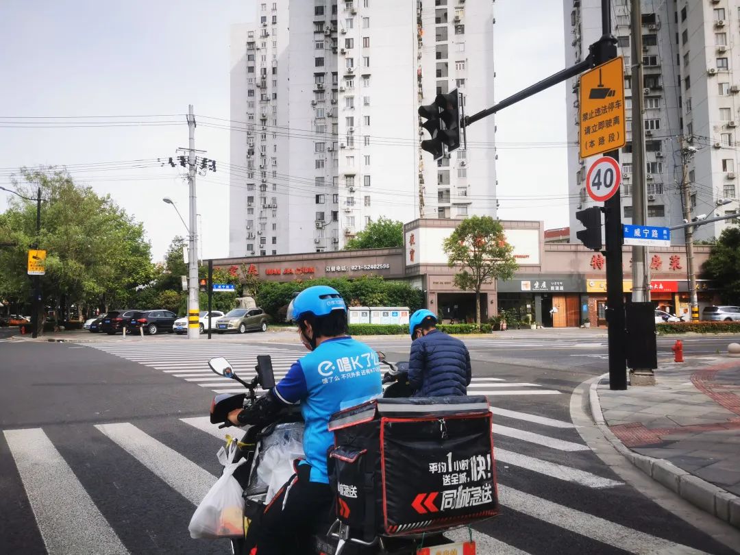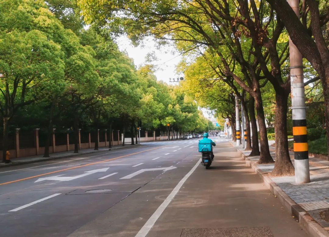 空旷的马路上,不时有快递小哥骑着他们的小电驴飞驰。