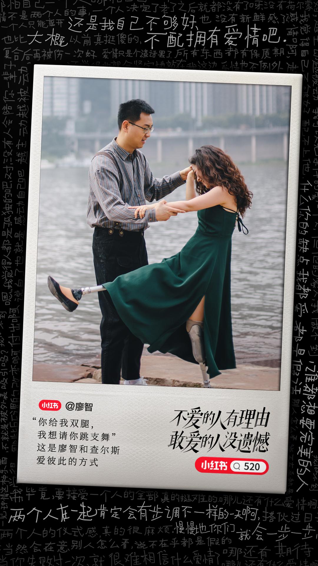 舞蹈老师@廖智在汶川地震中失去了双腿和婚姻,在一次舞蹈比赛中,廖智和从事义肢行业的查尔斯相识。