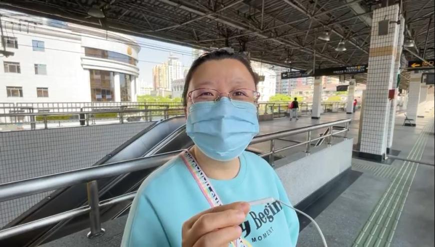 刚刚结束了13个小时工作的付小姐,还是按捺不住雀跃的心情来乘地铁,“一股自由的空气弥漫在我的心中。我这个无处安放的心啊,就想趁着公共交通开的第一天出来记录一下,听一听这个声音觉得很开心啊!太怀念之前坐地铁的感觉了!”