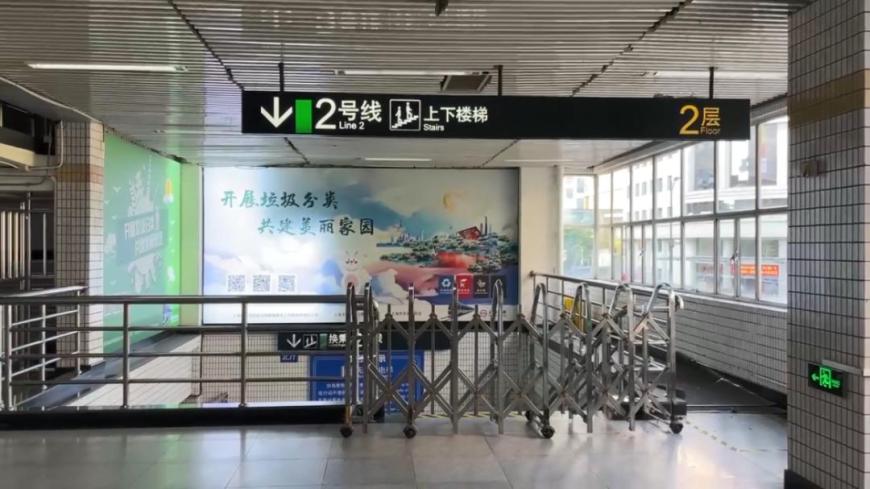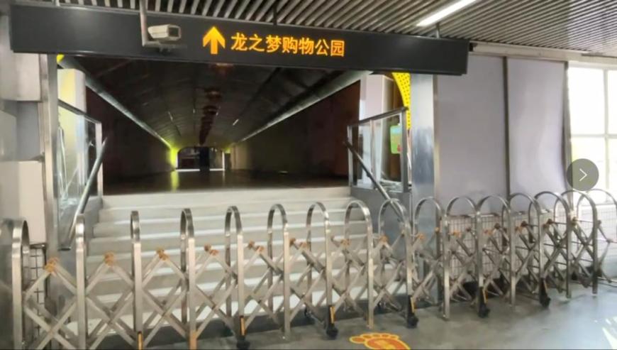 记者注意到,3号线换乘2号线的通道,以及前往长宁龙之梦的连廊,仍然是封闭的。