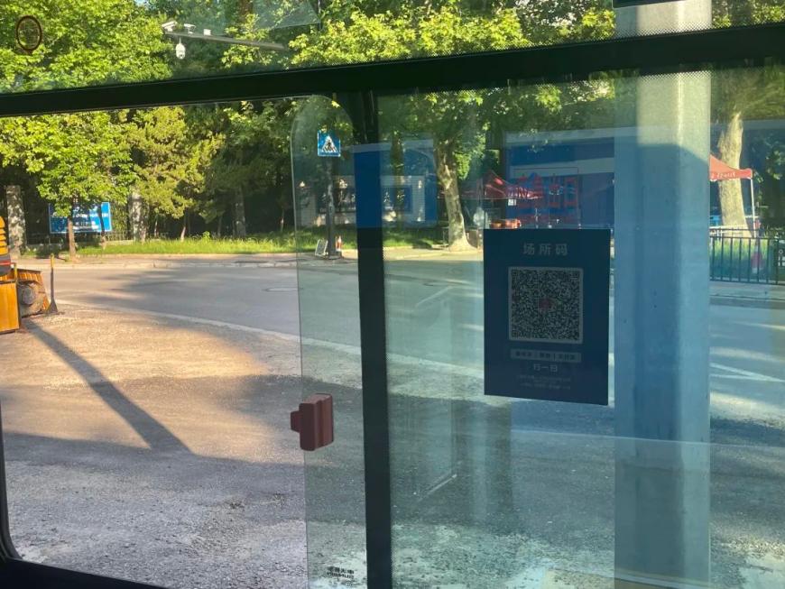 乘坐公交车最大的变化就是现在需要扫描“场所码”了,车厢内“场所码”在前门位置,后门车窗处都各张贴了一张。线路恢复营运后,值勤驾驶员会逐站提醒每一位上车乘客,及时扫码登记。