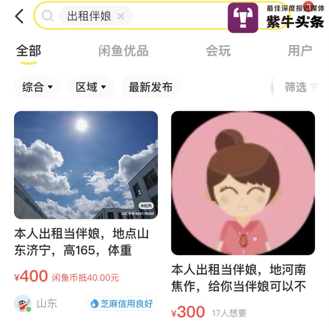 紫牛新闻记者在小红书和闲鱼等平台输入“伴娘出租”就会跳出很多搜索结果,地址显示在全国各地,有兼职伴娘,也有职业伴娘。